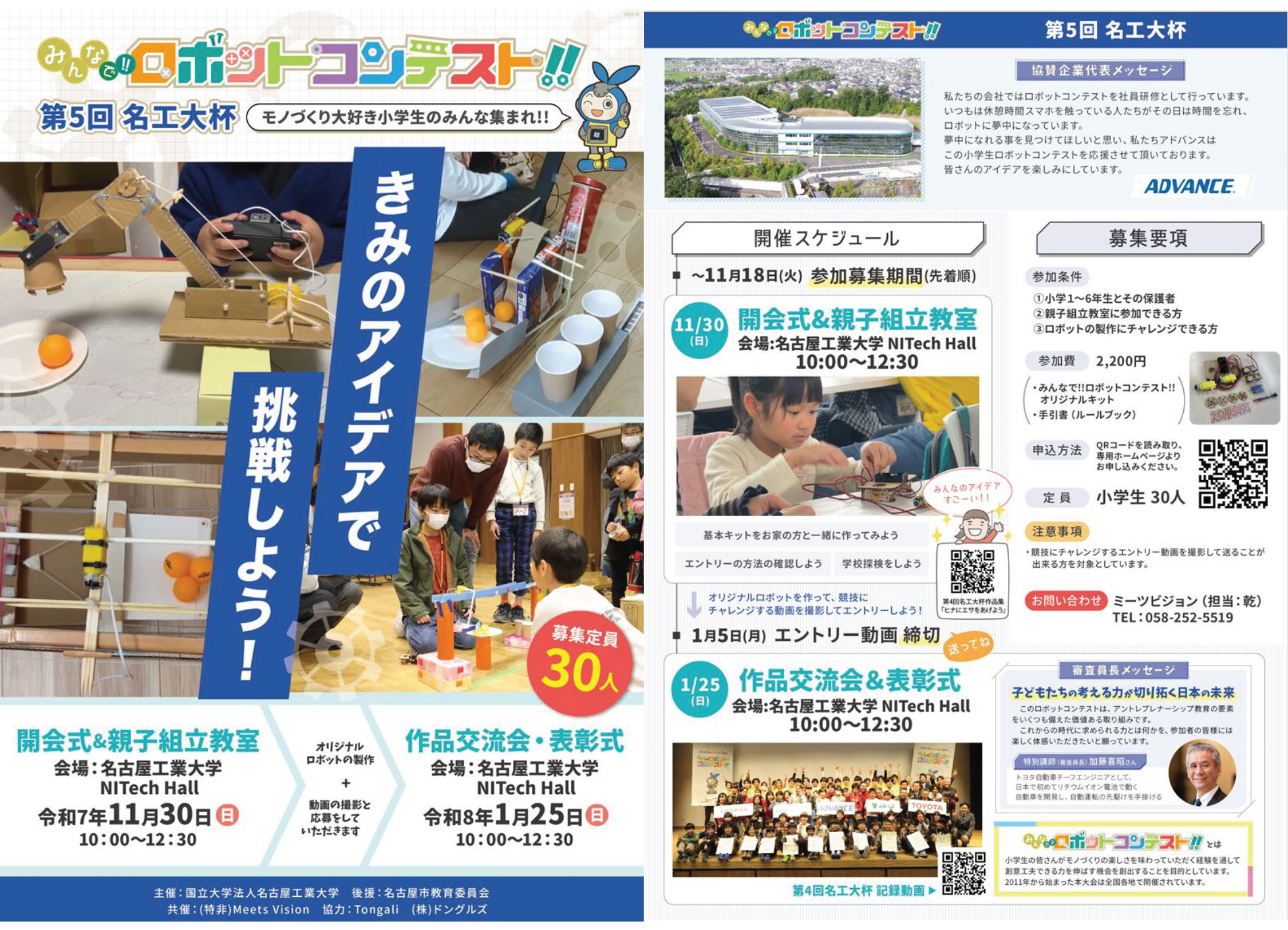 2025/11/30 みんなで‼ロボットコンテスト‼名工大杯に協賛いたしました 投稿日: 12月 3, 202512月 3, 2025 投稿者: admin 2025年11月30日(日)に名古屋工業大学にて開催された小学生向けロボットコンテストに協賛企業として参加いたしました。今回は開会式&親子組立教室が開催され、2025年1月25日(日)に作品交流会&表彰式が開催されます。当社は昨年の岐阜大会(各務原)に続く2回目の参加となります。小学生の皆さんの楽しくも真剣にキットを製作されている姿を拝見し、将来を担う子供たちの学びの場として、このような地域貢献活動の重要性を再認識いたしました。